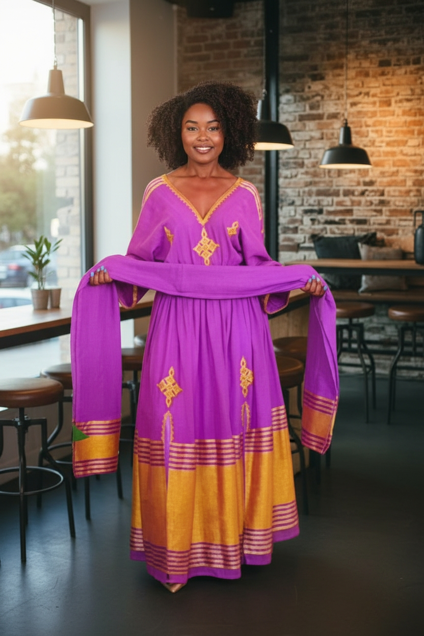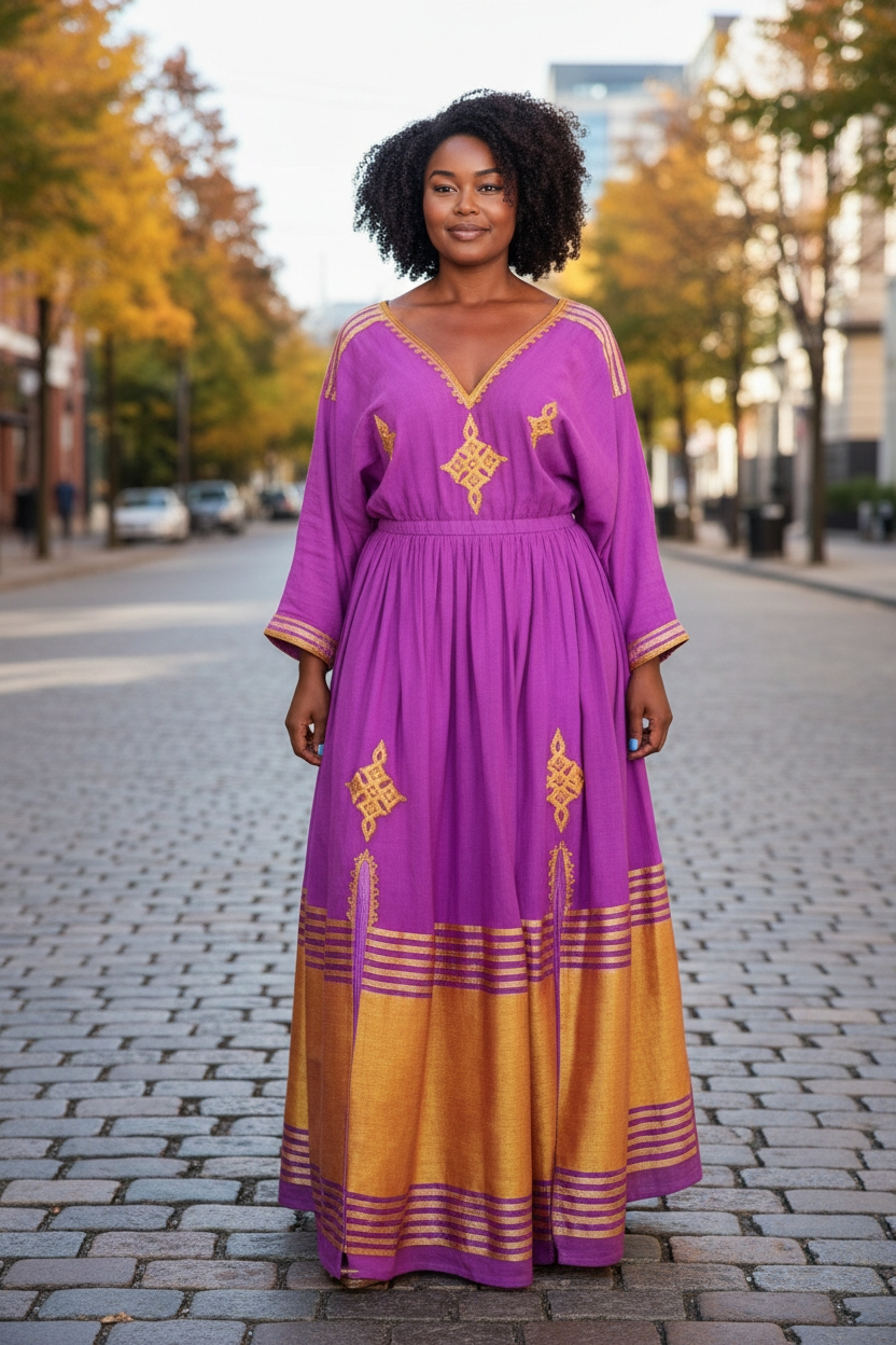 Style: Traditional Ethiopian/Eritrean "Habesha Kemis" (Kaftan style)