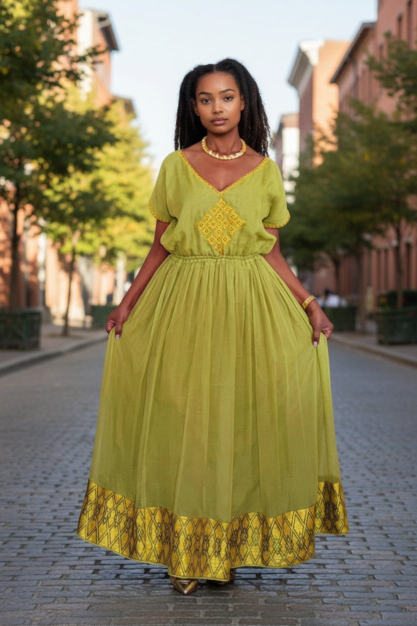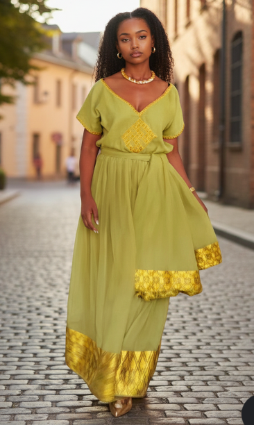 Style: Traditional Ethiopian/Eritrean "Habesha Kemis" (Kaftan style)