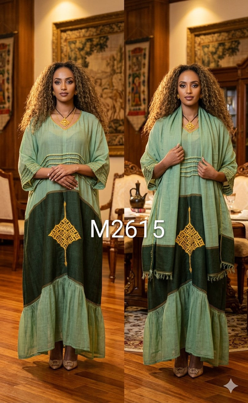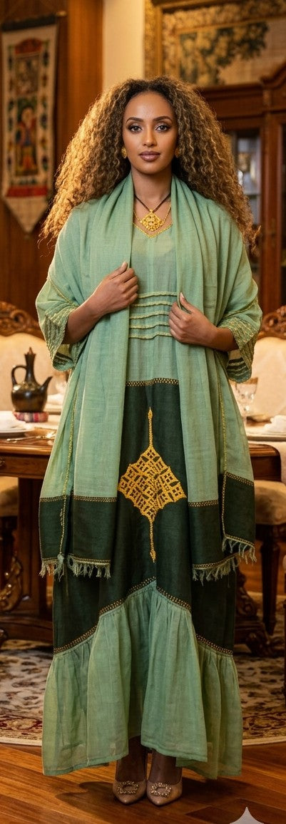 Style: Traditional Ethiopian/Eritrean "Habesha Kemis" (Kaftan style)