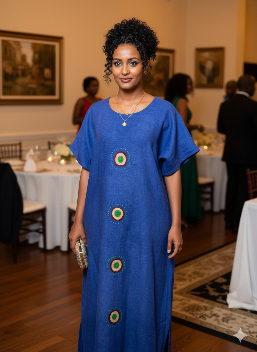 Made from 100% organic hand spun and woven cotton, this heavyweight free size dress is comfortable and chic. Fit for any occasion.