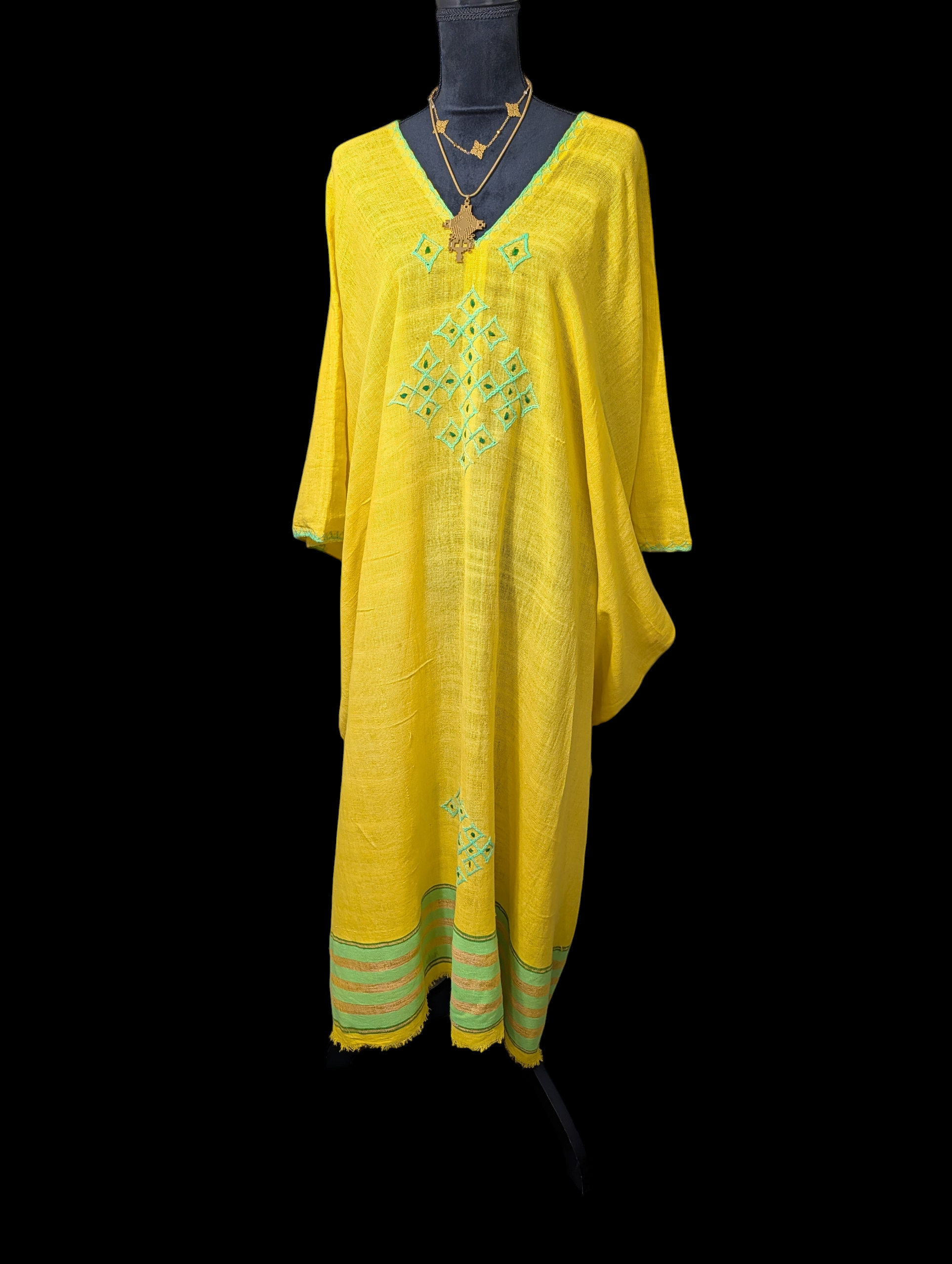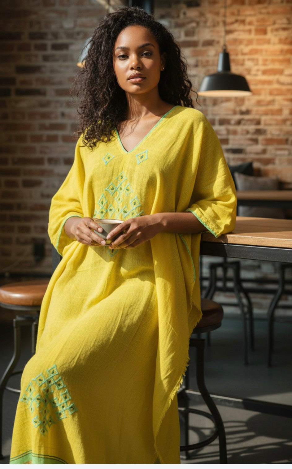 One size fits all, free flowing 100% organic cotton. This maxi dress is perfect for daily casual wear or for a formal feel with the right traditional or modern accessories.