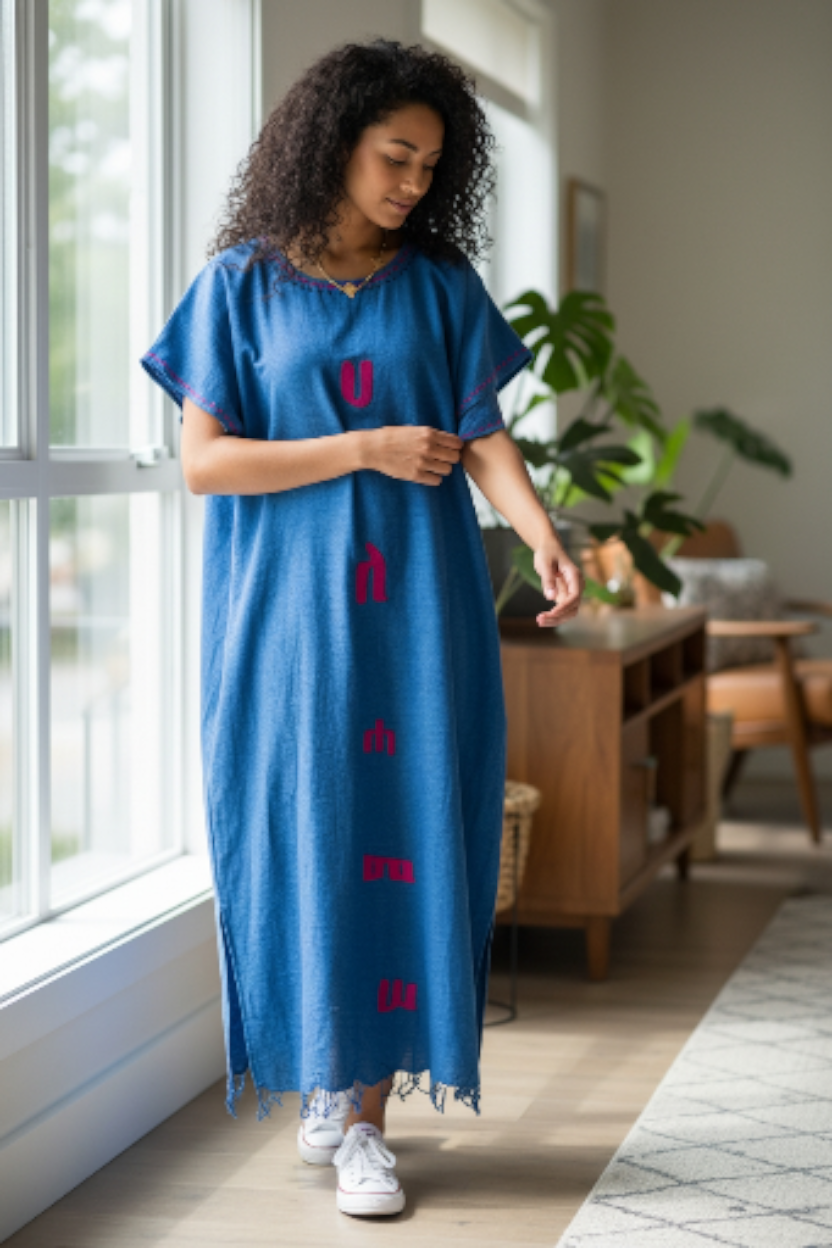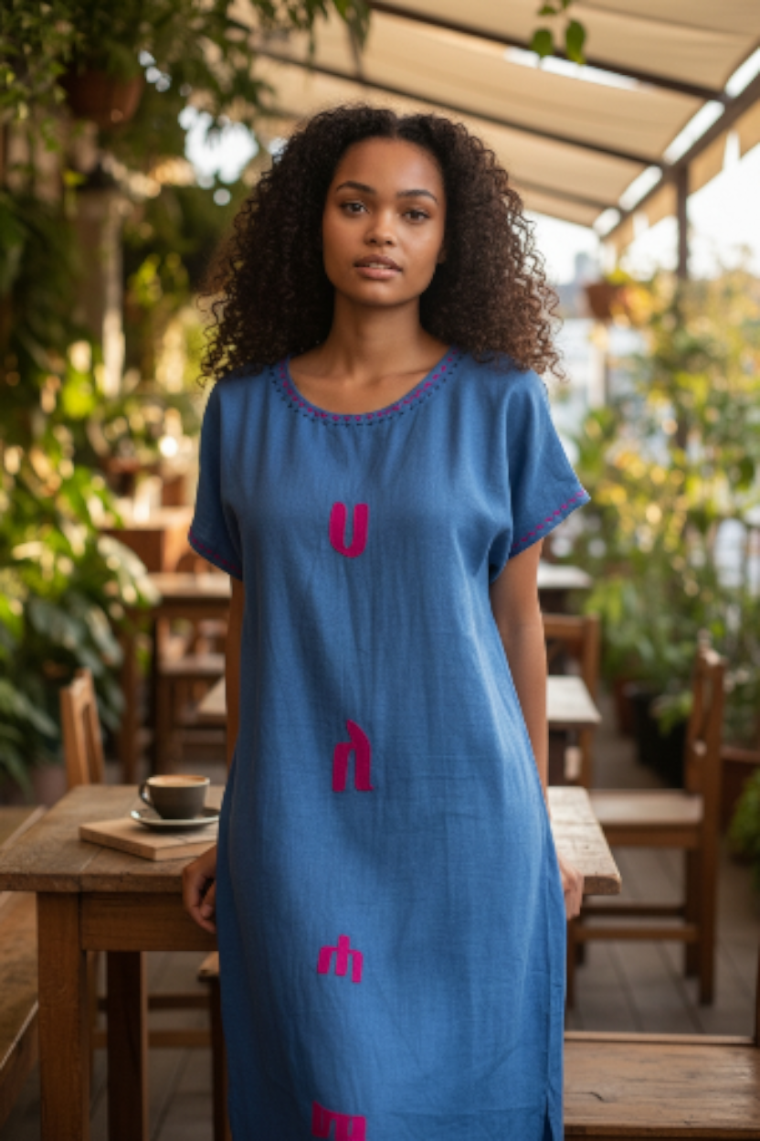 Made from 100% organic hand spun and woven cotton, this heavyweight free size dress is comfortable and chic. Fit for any occasion.