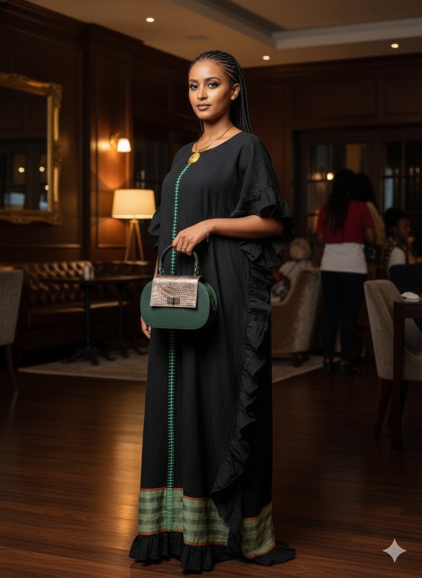 Large size , free flowing 100% organic cotton. This maxi dress with ruffles on the six is perfect for daily casual wear or for a formal feel with the right traditional or modern accessories.