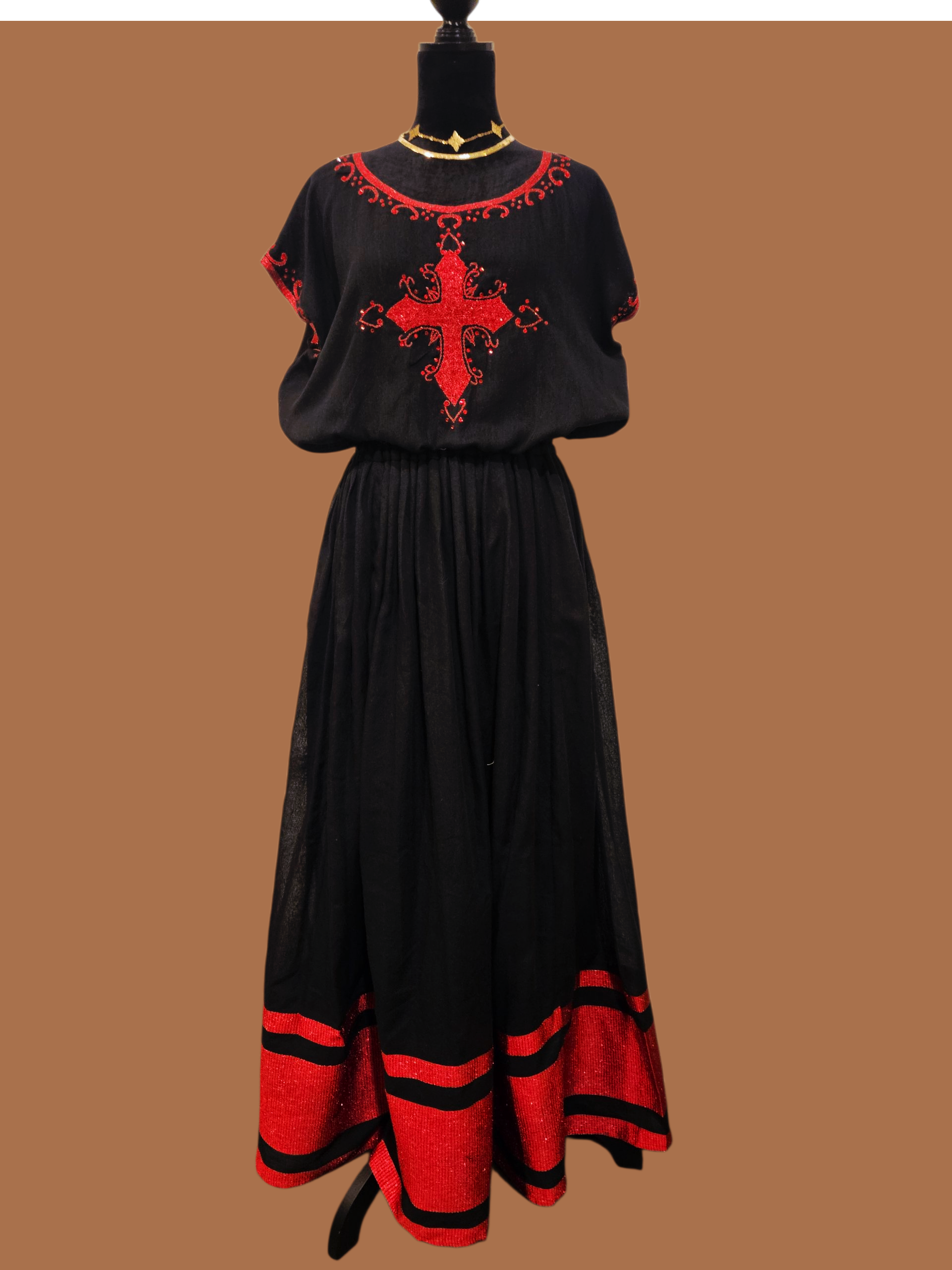 2 piece medium to large 100% cotton dress. Hand embroidered and bejeweled with rhinestone.
