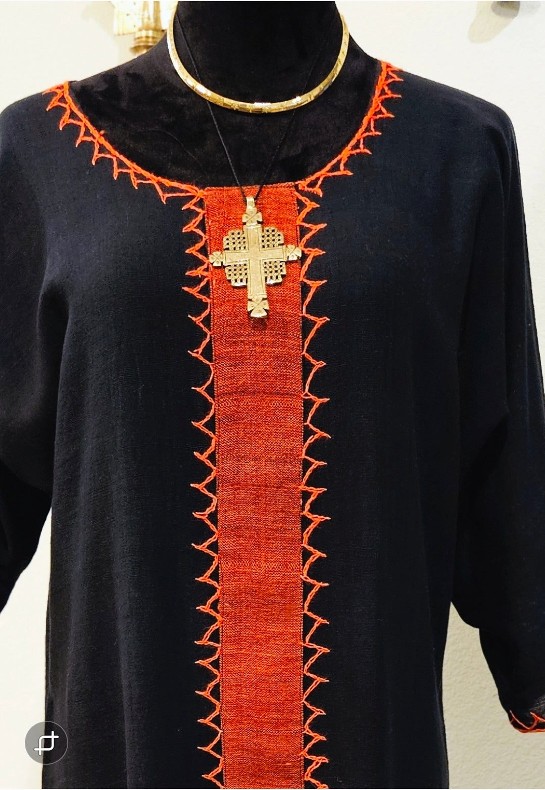 Small to Medium size, free flowing 100% organic cotton. This maxi dress is perfect for daily casual wear or for a formal feel with the right traditional or modern accessories.