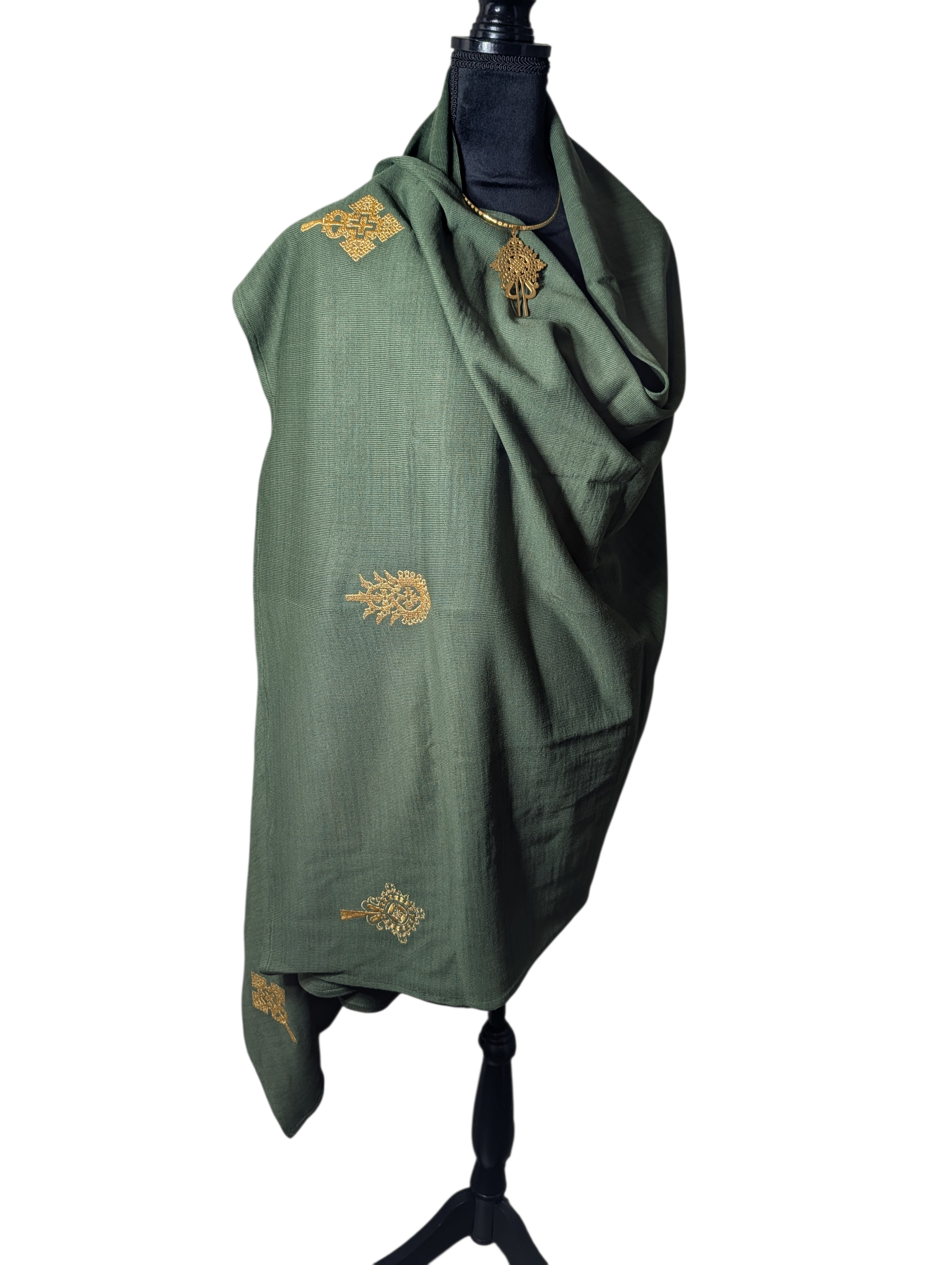 Shifta7 - J2610 Green extra wide shawl with cross design