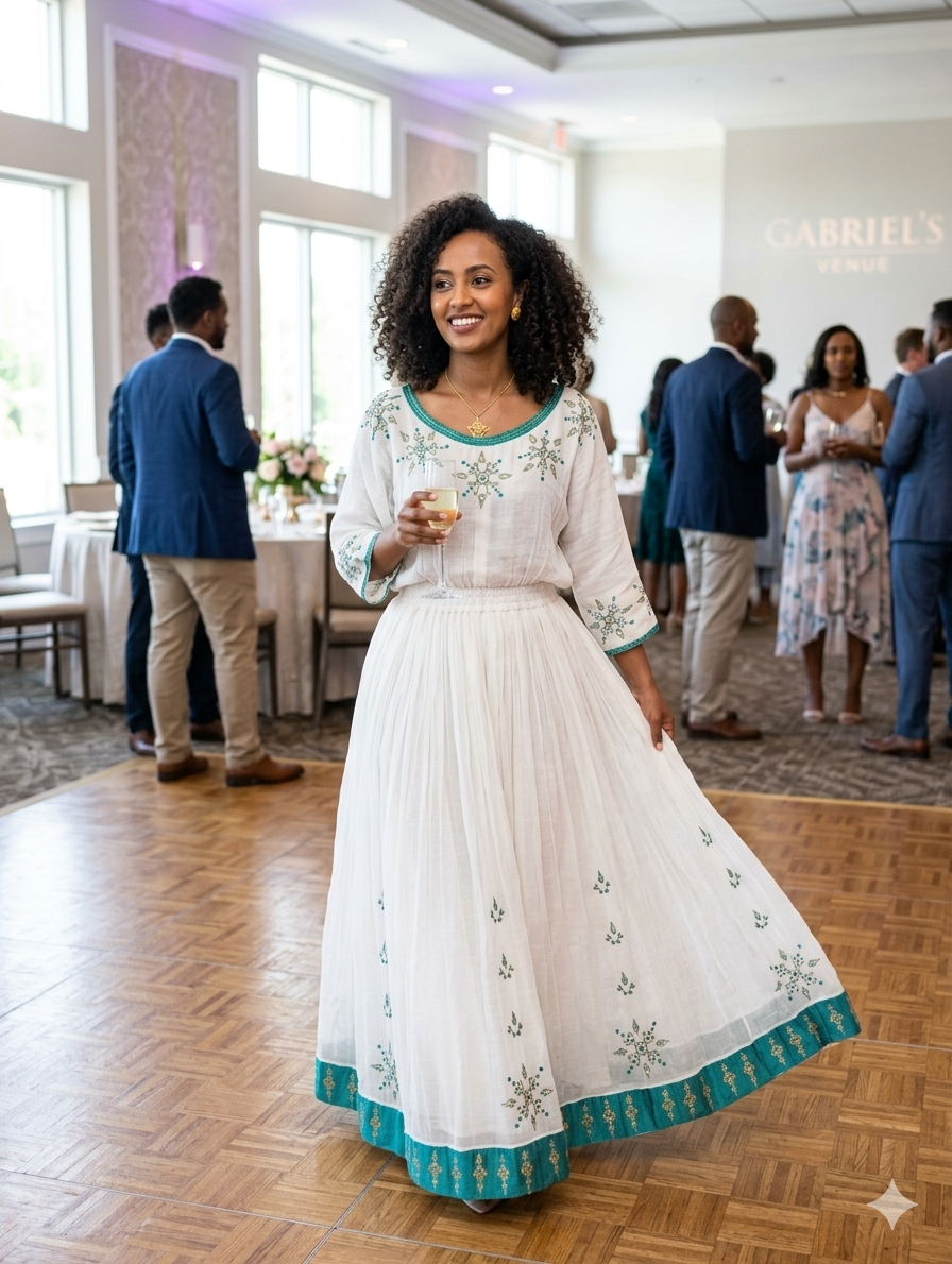 Specifications: Material: 100% Cotton (Soft and breathable) Craftsmanship: intricate Hand Embroidery (Tibeb) Size: Large to Extra Large (Flowy, adjustable fit) Includes: Comes complete with a matching Full Netela (Shawl) Care: Hand...