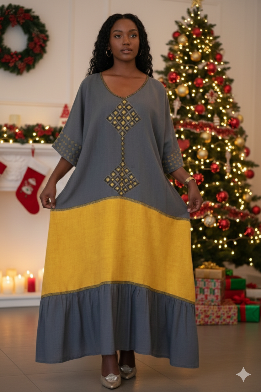 Style: Traditional Ethiopian/Eritrean "Habesha Kemis" (Kaftan style)