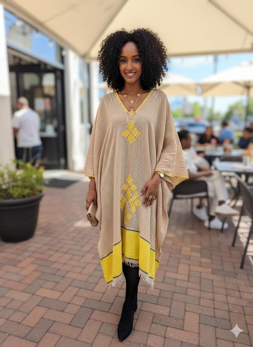 Ethiopian Cotton Tunic Bold, cultural, and effortlessly chic—this Shifta7 tunic is crafted in Ethiopia from hand-spun, handwoven cotton and finished with intricate hand-embroidered patterns.
