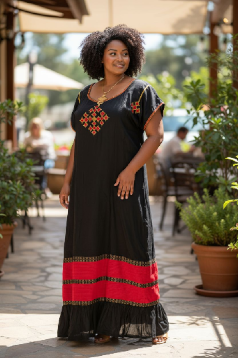 Shifta7 - N2518 Two Piece Elegant Black and Red Drape Dress