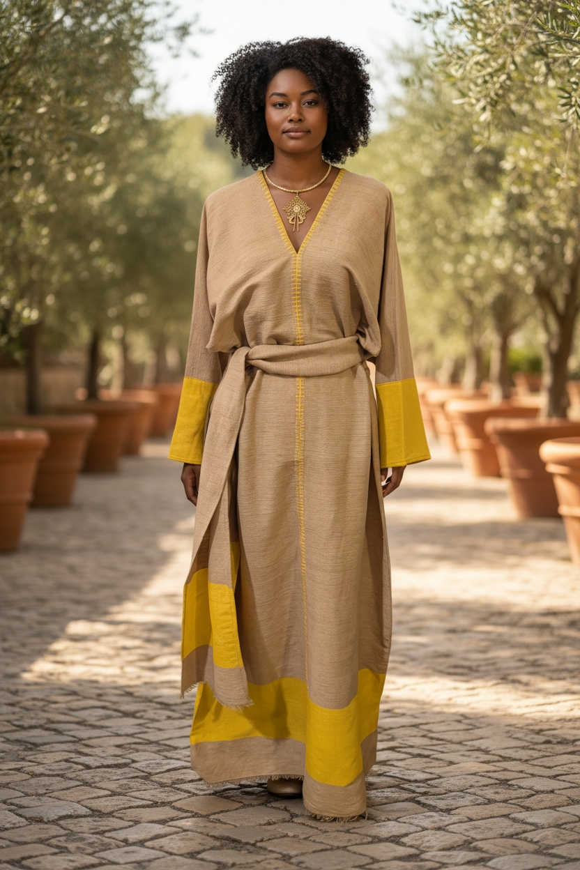 One size fits all, free flowing 100% organic cotton. This maxi dress is perfect for daily casual wear or for a formal feel with the right traditional or modern accessories.