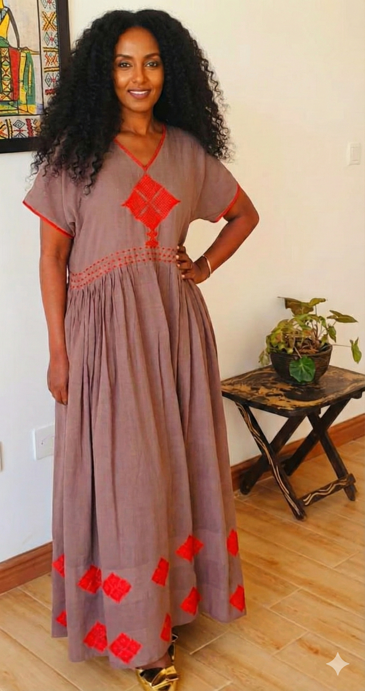 Specifications: Material: 100% Cotton (Soft and breathable) Craftsmanship: intricate Hand Embroidery (Tibeb) Size: Fits Medium to Large (Flowy, adjustable fit) Includes: Comes complete with a matching Full Netela (Shawl) Care: Hand...