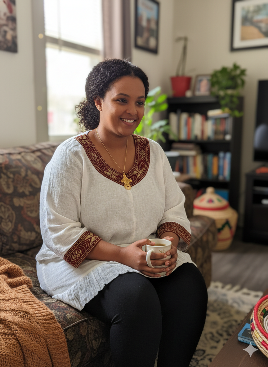 Elegant hand-embroidered top. Made from soft Ethiopian cotton with detailed sleeve accents — timeless, cultural, and effortlessly chic.