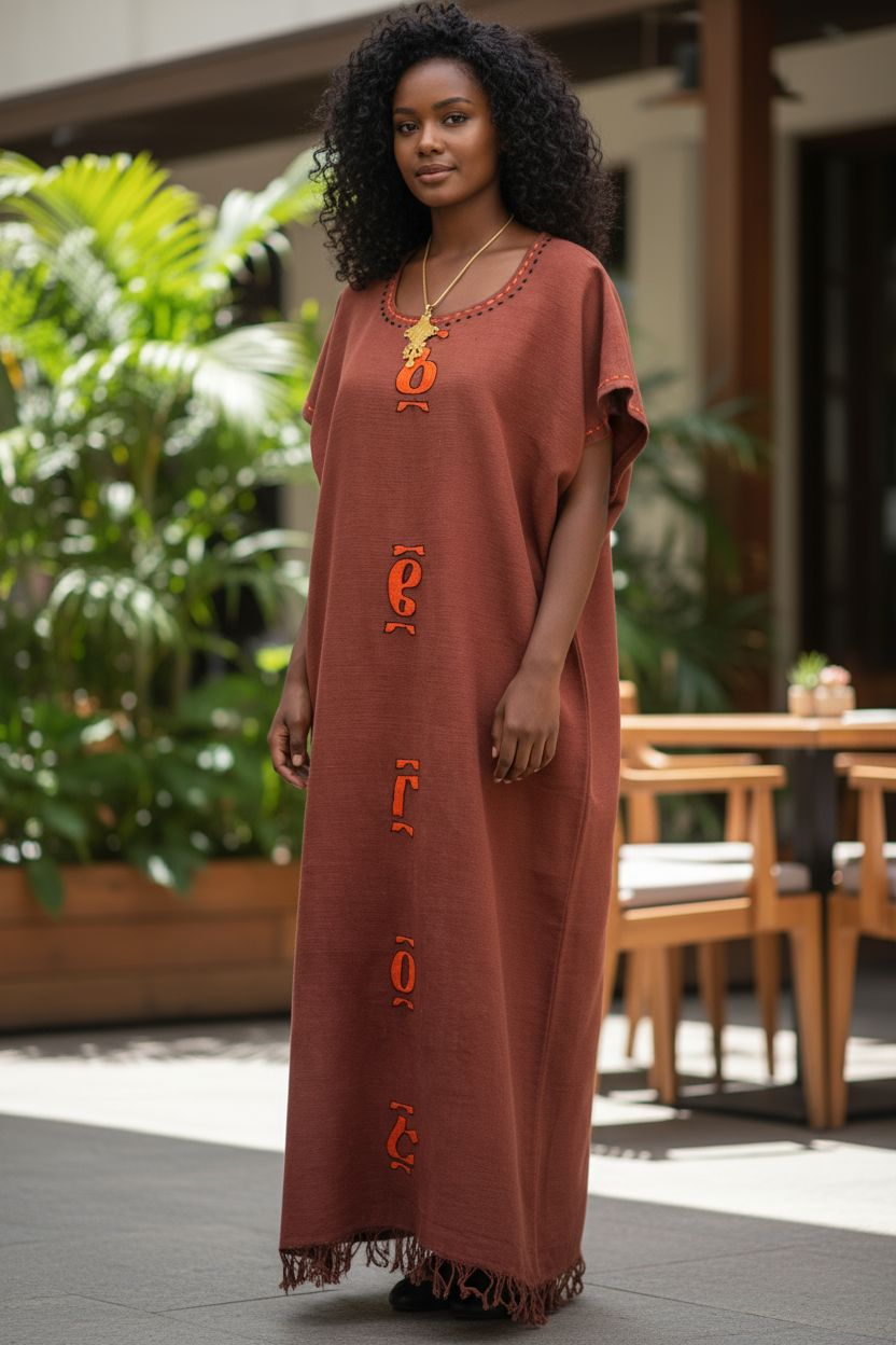 Shifta7 - O2565 Ethiopian HaHu Cotton Dress Size L